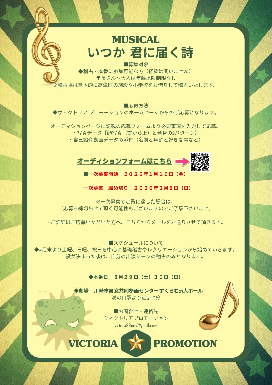 二次募集以降、定員に達した場合は対面でのオーディション審査をさせていただきます。